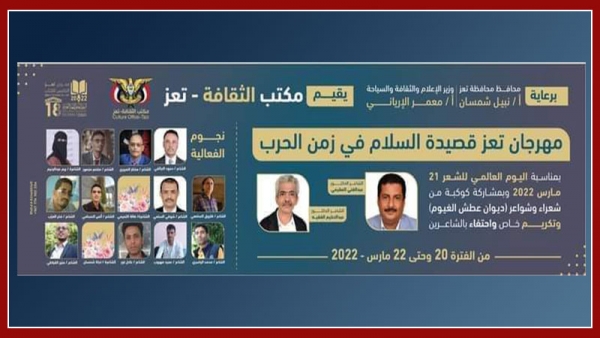 مكتب ثقافة تعز ينظم مهرجان "تعز قصيدة السلام في زمن الحرب"
