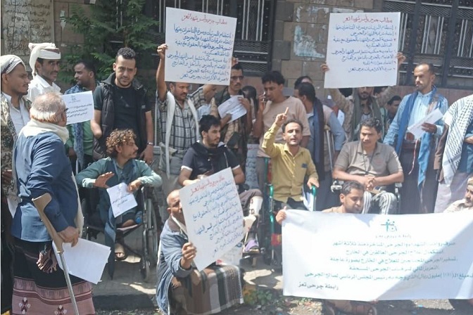 جرحى الجيش في تعز ينددون بالإهمال والتجاهل الحكومي لمطالبهم