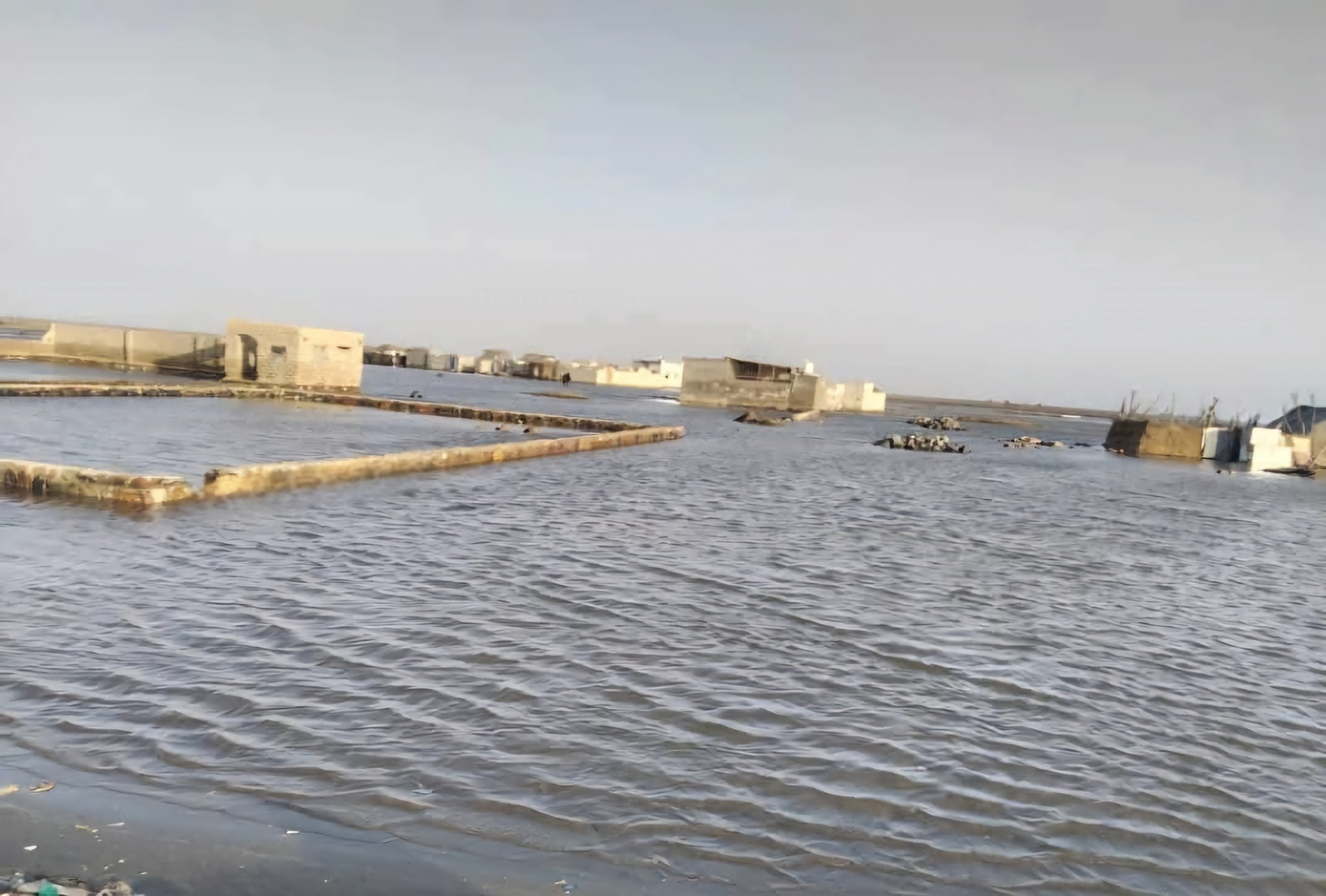 الحديدة..مياه البحر تغمر منازل المواطنين في اللحية وتجبر الأسر على النزوح