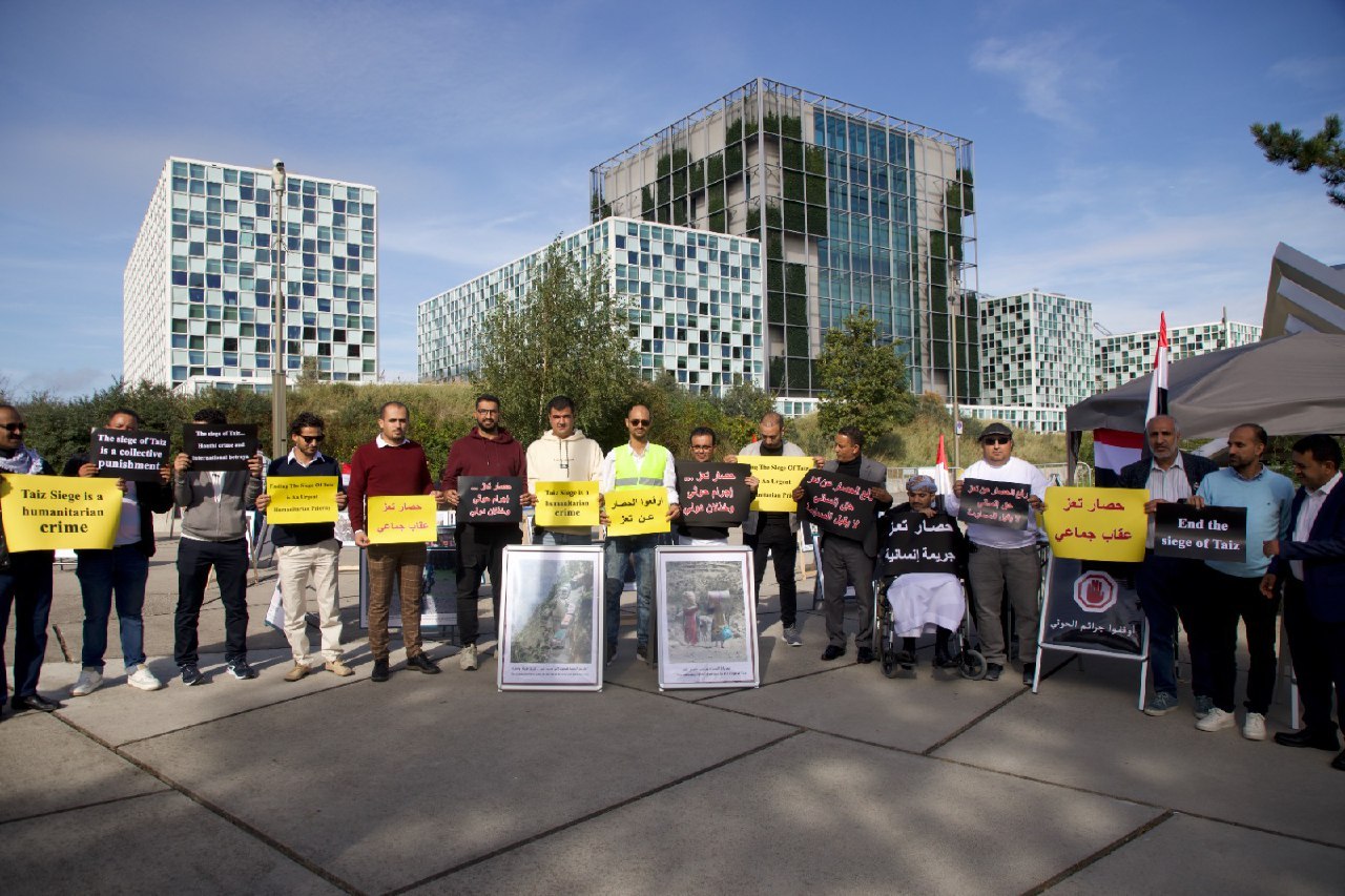 لاهاي.. وقفة احتجاجية أمام محكمة الجنايات الدولية تطالب برفع الحصار الحوثي الظالم عن تعز