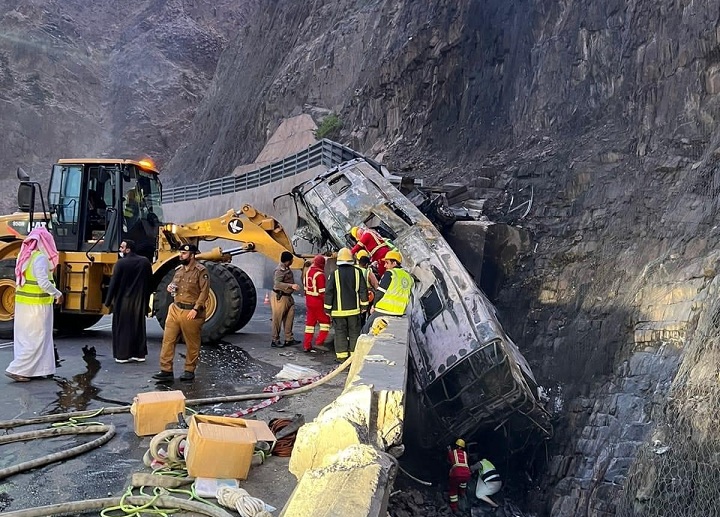 بيان رسمي: وفاة وإصابة ستة يمنيين في حادثة اصطدام حافلة المعتمرين بالسعودية