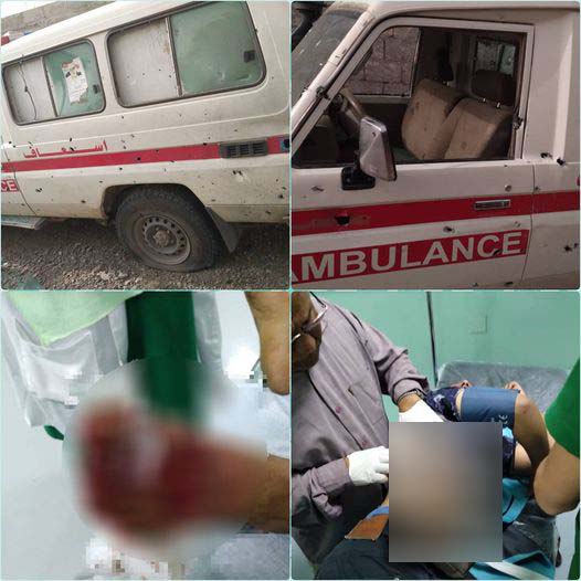 الضالع.. إصابة 4 بينهم طبيبان بقصف حوثي استهدف سيارة إسعاف