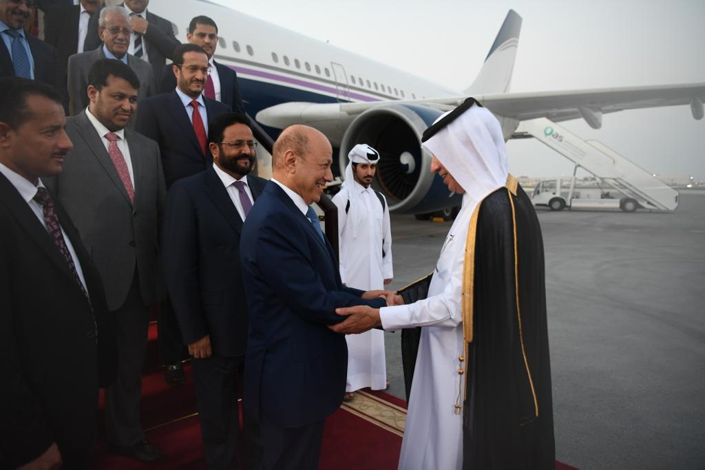 الرئيس العليمي يصل الدوحة برفقة عدد من أعضاء المجلس الرئاسي