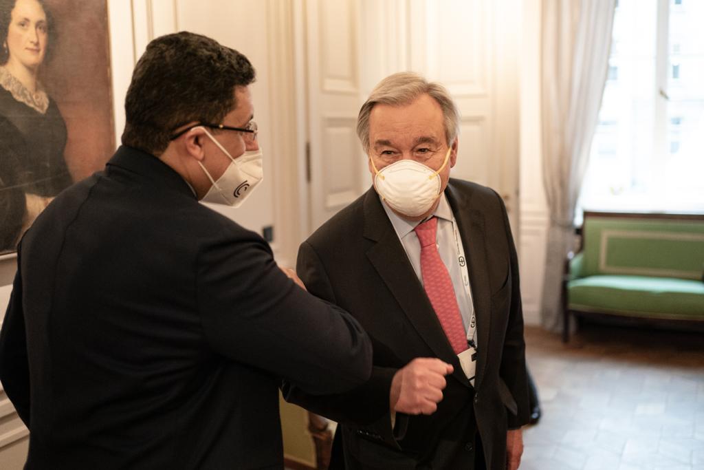 على هامش مؤتمر ميونيخ.. بن مبارك يطالب غوتيريش بموقف أخلاقي ازاء انتهاكات الحوثيين