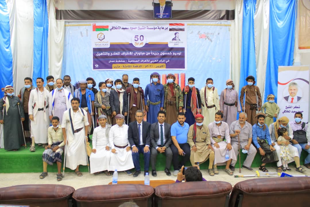 مأرب .. حفل توديع الدفعة الثامنة من الجرحى المبتورين للعلاج في سلطنة عمان الشقيقة