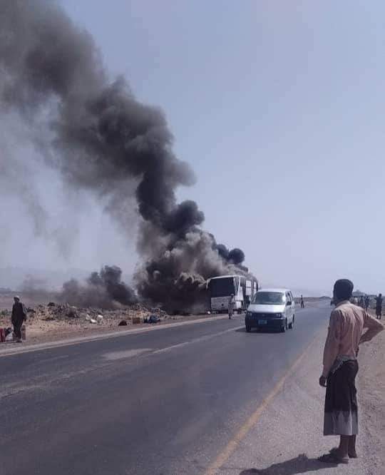 #شبوة.. نشوب حريق في حافلة نقل جماعي على خط المكلا عدن ولا أضرار بشرية