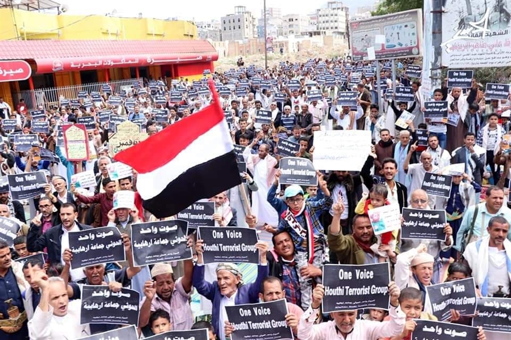 المئات في تعز يطالبون بتصنيف الحوثي جماعة ارهابية