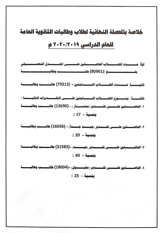وزارة التربية والتعليم تعلن نتائج الثانوية العامة للعام المنصرم