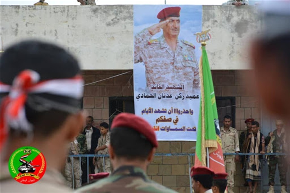 محور تعز يعلن طي صفحة التمرد العسكري في اللواء 35 والعميد الشمساني يتسلم مقر قيادة اللواء في العين